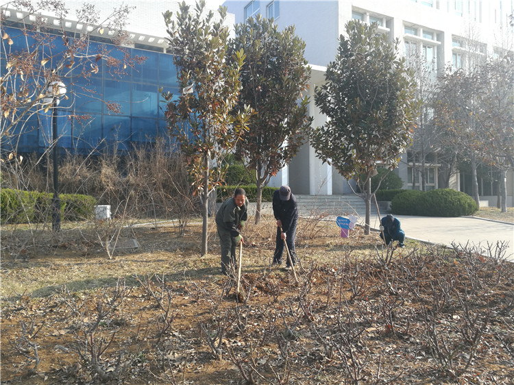 清理枯叶、剪枝塑型,松土翻整、修剪残枝,摘除树木越冬防护罩,浇灌回春水,对牡丹园、月季、茶花等树木进行追肥,促进树木生长……“一年之计在于春,春天就是劳动开始的季节,有了早春的忙碌,才有其他季节的收获”、“这里的一花一草,就像是我们的孩子,经过自己双手的打理,想着几个月后生机勃勃百花争艳的校园风光,我们也很是骄傲。”几位正在作业的绿化工人朴实的话语,一直萦绕在我们的耳边。