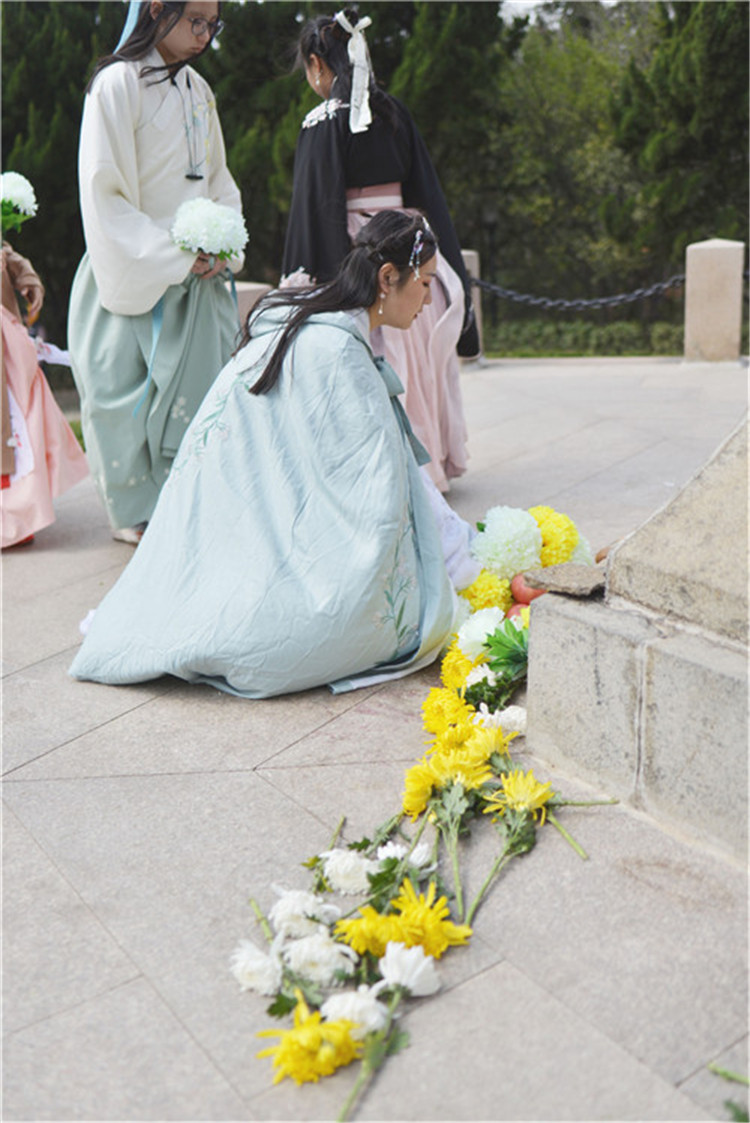 今年4月1日,花朝节前夕,社团的同学们与烟台汉服协会的各位同袍共七十余人一起参加花朝节相关活动。4月6日,为纪念清明佳节,缅怀革命先烈,他们再次与烟台汉服协会同袍相约烟台山公园,三十余名同袍身着中华民族传统服饰,在山顶上所有人集体诵读祭文,并面朝英雄纪念碑,向祖国的英雄献礼致敬。