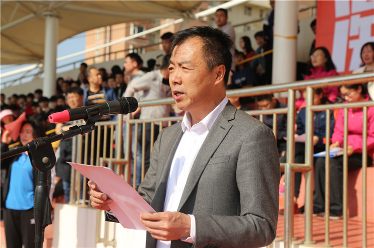 杨新春院长在开幕式上致辞。他首先代表学校及运动会组委会,向本届运动会的胜利开幕表示热烈的祝贺。向精心筹备本次赛会的所有工作人员表示诚挚的谢意。向积极参赛的运动员以及辛勤付出的裁判员表示亲切的慰问。他指出,本届运动会以“凝心聚力,争先创优”为主题,将全面展示出我校上下全力争创优质高职院校的良好精神面貌。学校体育工作是实现“健康中国”的有力保障和基础性工程,蕴含着健康与教育两大国家战略,具有极其重要的意义。他提到,过去的一年里,我校学子积极参加全国全省各类体育竞赛,成绩斐然,2017年,在“全国大学生武术散打锦标赛”中,张书宽同学斩获80公斤级铜牌,实现我校参加全国体育赛事的开门红。在全省大中小学生体育联赛乒乓球比赛中,我校共获得1枚金牌、2枚银牌、1枚铜牌,同时斩获女子团体金牌、男子团体铜牌。在全省大学生田径锦标赛中,我校也创下了4金7银5铜的优异成绩。在其他全省大学生排球、篮球联赛中,我校同样名列前茅,表现突出。他希望,各位参赛运动员充分发扬顽强拼搏、不怕困难的体育精神,坚持“友谊第一,比赛第二”的原则,规范参赛、文明参赛,赛出水平、赛出风格;希望所有裁判员同志秉承“公平、公正”的准则,恪尽职守,认真履行岗位职责;同时希望全体同学遵守大会纪律,做文明观众,各系部、班级要加强管理,做好后勤服务工作,共同营造热烈和谐的赛场氛围。最后,他预祝所有参赛运动员们能够突破自我、创造佳绩。预祝本届田径运动会取得圆满成功!