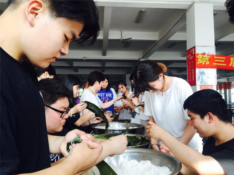 包粽子比赛前,食堂阿姨亲自“授课”,为同学们讲解包粽子的技巧和注意事项。包粽子大赛在汉服社充满国风的柔美舞蹈中拉开帷幕,比赛中,选手们灵活地折粽叶、装糯米、缠绳子……尽管现场操作“小意外”不断,粽子包的更是形状各异,但同学们兴致勃勃没有丝毫懈怠,赛场上时不时传来阵阵笑声。最终,来自安徽的16级会计14班的包惜羽同学包的粽子保质保量,得到评委认可,荣获冠军。